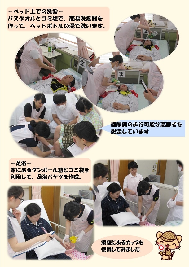 看護第1学科 3年生の授業の様子です。 3年生になると、グループごとに、計画を立て、行い、発表する演習が増えてきます。