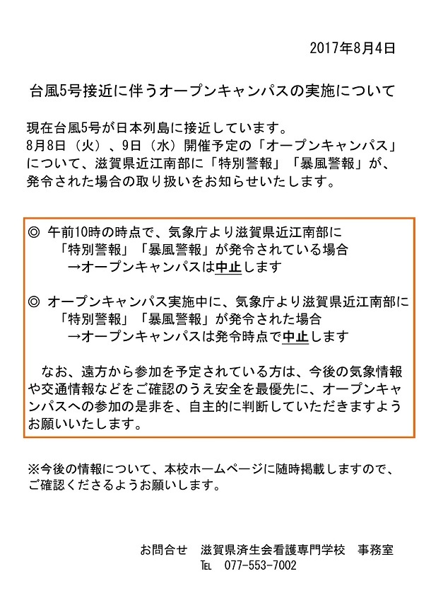 滋賀県済生会看護専門学校の各種行事やイベントのお知らせ