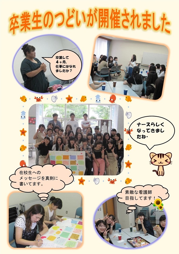 2018年08月03日(金) お知らせ 卒業生のつどいが行われました 卒業生して4ヶ月、お菓子を食べながら近況報告。 みんなで勉強していたころが懐かしいねー♪ 元気そうな顔が見れて教員もホッとしています。 いつでも顔を見せに来てください(*^_^*)