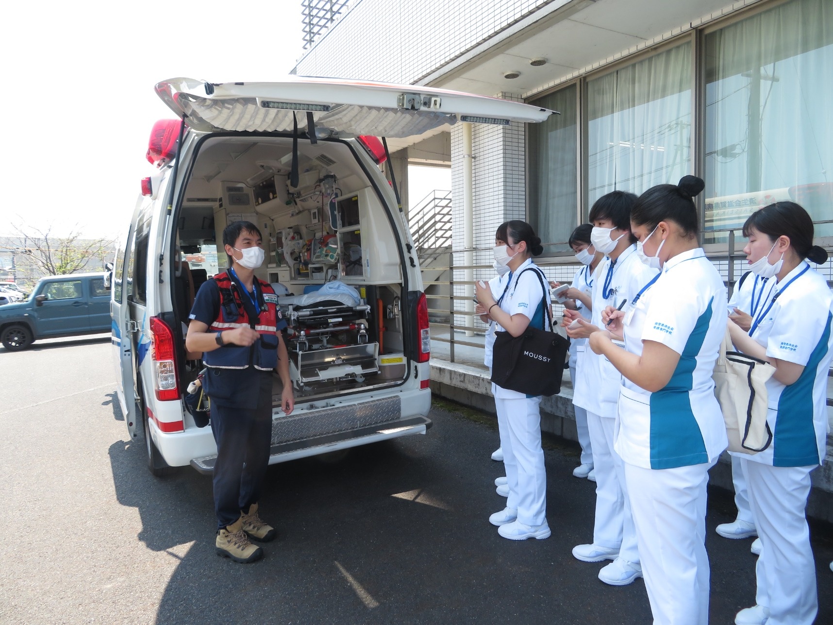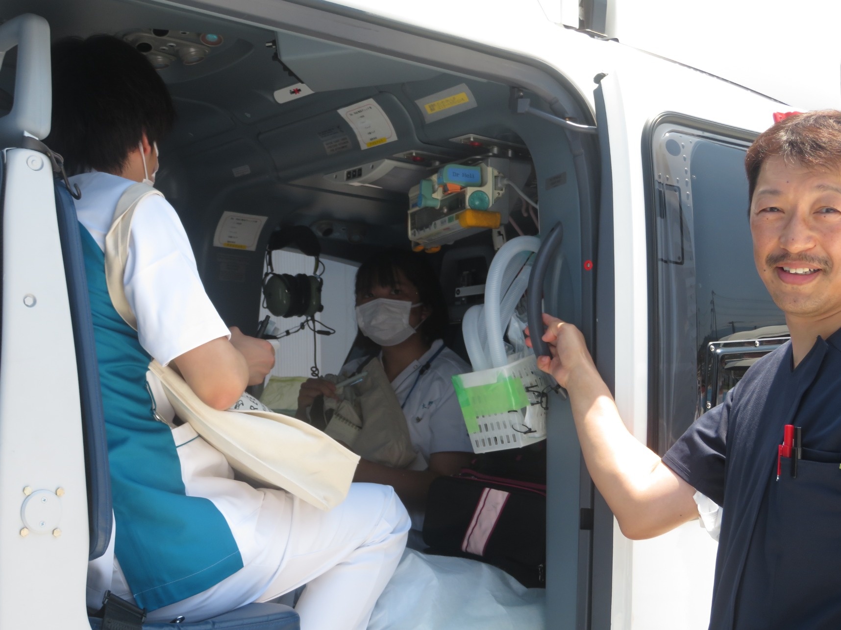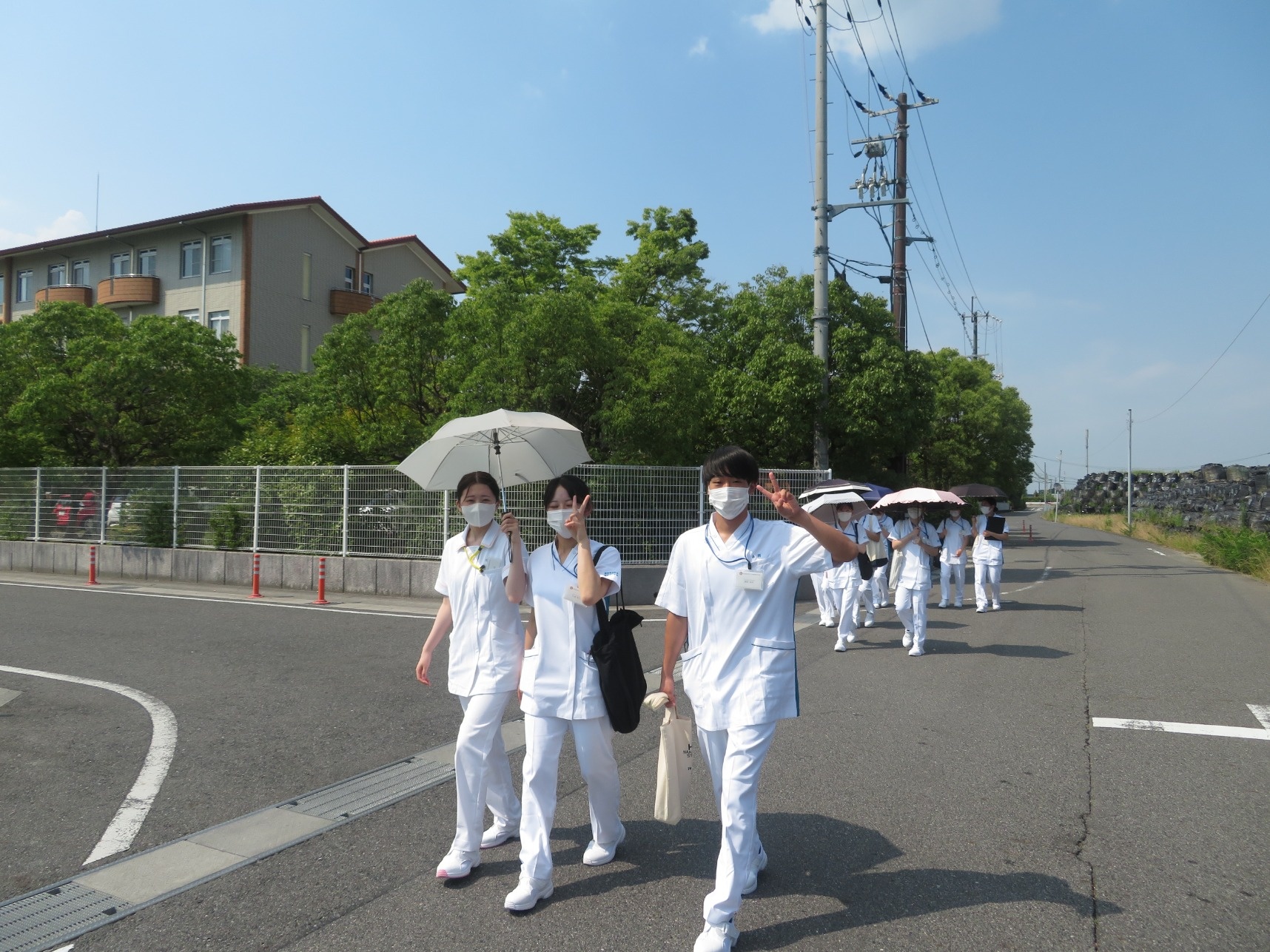 2025年09月04日(木) 学校の様子 < お知らせ 1年生の実習の様子☆ 6月に1年生は基礎看護学実習Ⅰにいきました(^^♪ あまりに暑いので日傘の許可をいただき、ドクターヘリなどの見学をさせていただきました。 多職種連連携で各部署を見学させてもらいました。